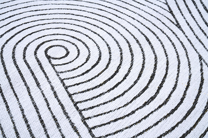 Sonno White to dywan, który łączy czystą biel z delikatnymi czarnymi liniami układającymi się w koncentryczne koła, tworząc unikalny, geometryczny wzór. Jego design dodaje wnętrzu wyjątkowego charakteru – idealnie komponuje się z aranżacjami w stylu nowoczesnym, minimalistycznym, skandynawskim czy japandi.