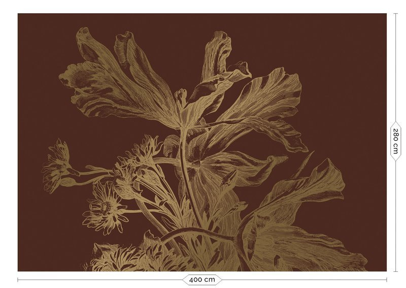 Rysunki kwiatów to ryciny wykonane w Złotym Wieku przez różnych artystów. Te wypełniające ściany czarno-białe rysunki tworzą spektakularny efekt w każdej sypialni, gabinecie, a nawet pokoju dziecięcym, a złoty, metaliczny podkład nadaje szlachetności.