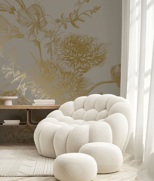• Mural Engraved Flowers MW-150 metallic gold na tle w szarym odcieniu