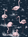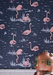 Tapeta Flamingos Blush on Midnight to bardziej odważna interpretacja — ciemne tło w kontraście z różowo-brzoskwiniowymi flamingami nadaje dekoracji dramatyzmu i głębi. Tło pochłania światło, co pozwala flamingom wybić się jako centralny element dekoracyjny. Roślinny motyw w tle dodaje struktury i subtelności. Układ half drop zapewnia harmonijny rytm wzoru na ścianie. Tapeta umożliwia delikatne czyszczenie powierzchni przy zachowaniu dekoracyjnych cech.