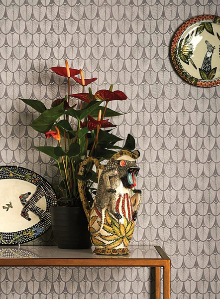 Tapeta Narina inspirowana jest naturalnym wzorem piór ptaka z Południowej Afryki. Projektanci Cole & Son wykorzystali te stylizowane pióra w formie delikatnego geometrycznego wzoru, który nadaje tapecie subtelny, lecz nietuzinkowy charakter – semi-plain, czyli półgładki z wyraźnym, artystycznym akcentem