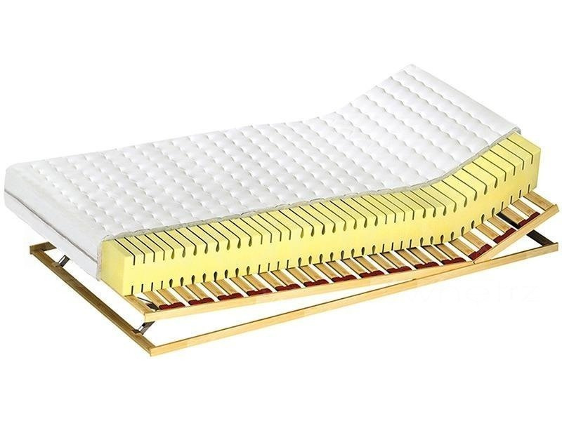 Wkład 7-polowy pianka wysokoelastyczna Kaltschaum dwustronnie cięta konturowo (wysokość wkładu 14 cm). Wersja H2 przeznaczona dla osób o wadze do 80 kg, wersja H3 powyżej 80 kg.
