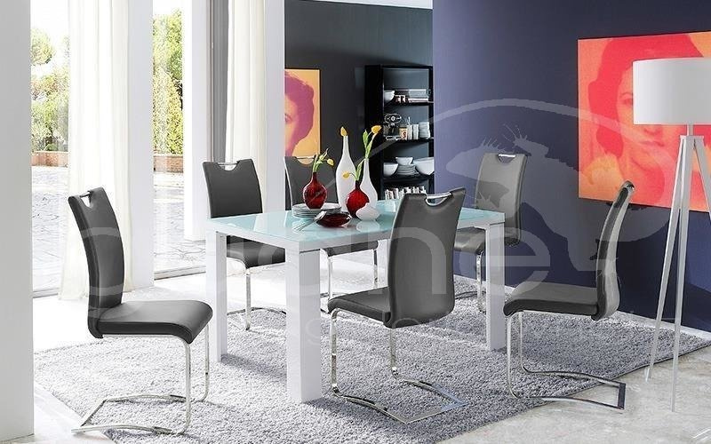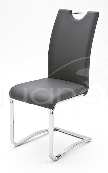 • Krzesło na płozie, stelaż chrom, płaski, ekoskóra szara
