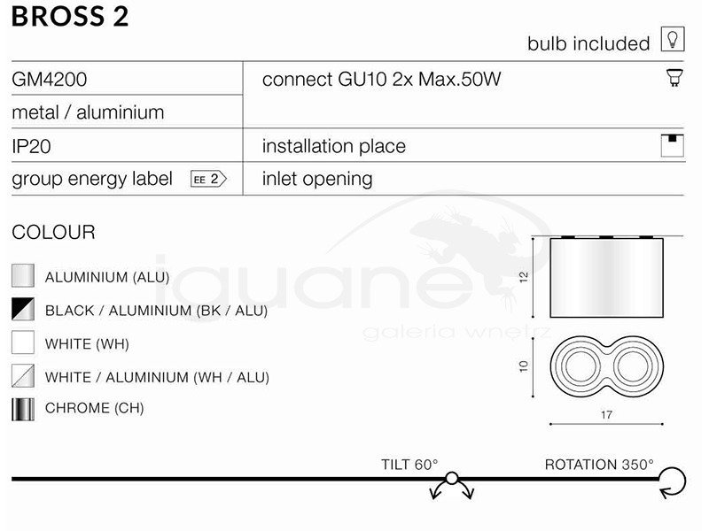 Źródło światła: | GU10 2x Max 50W |