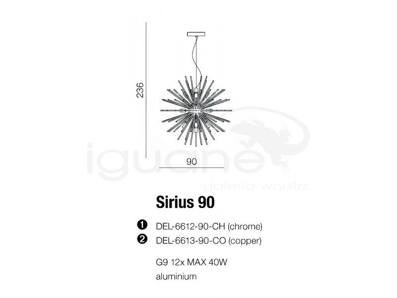 Dekoracyjna lampa wisząca Sirius Stick przypomina zwieszoną we wnętrzu gwiazdę. Sporych rozmiarów lampa wymaga przestrzeni ale zdominuje to pomieszczenie i przyciągnie wzrok na swoją misterną i oryginalną formę. Do wyboru mamy wersję w chromie lub w miedzi.