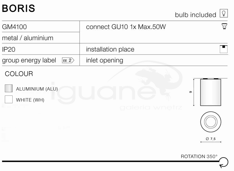 Lampy Boris wykonano z metalu odpornego na uszkodzenia mechaniczne. W naszej ofercie są dostępne w trzech wersjach kolorystycznych (biel, czerń, aluminium), dzięki czemu można je łatwo dopasować do każdej aranżacji lub łączyć w zróżnicowane zespoły, dające jeszcze lepsze efekty wizualne.