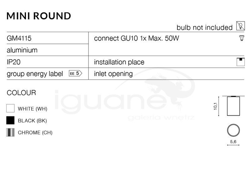 MINI ROUND ma pojedyncze źródło światła, osadzone w cylindrycznej, aluminiowej oprawie. W naszej ofercie występuje ona w trzech wariantach barwnych: białym, czarnym i w odcieniu chromu.