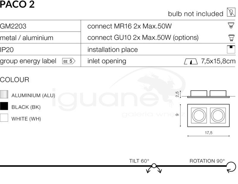 Źródło światła: | GU10 |