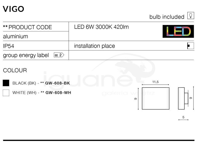 Źródło światła: | Led 6W 3000k 420lm bulb included |