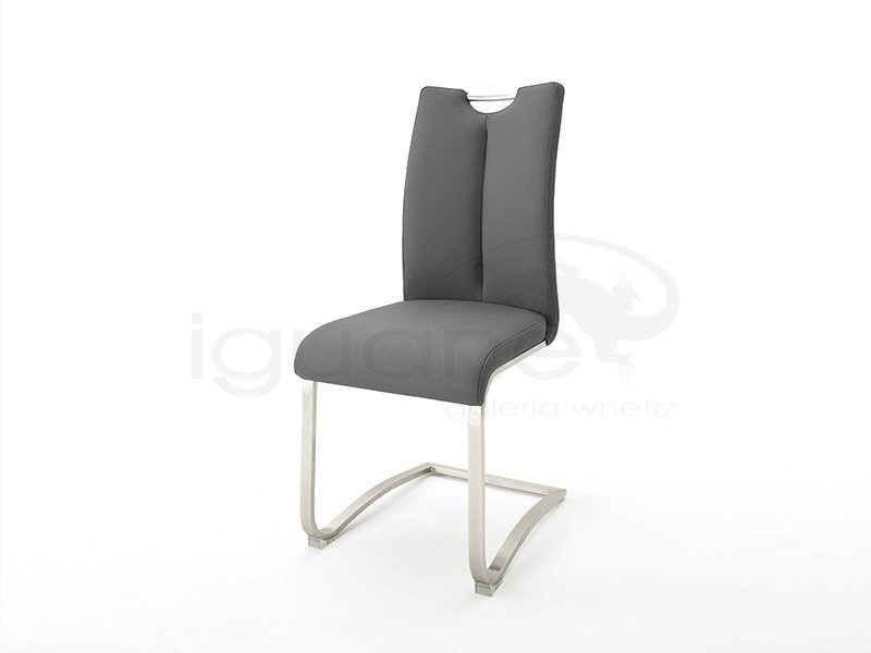 Krzesło na płozie, oparcie z uchwytem, stelaż stal szlachetna szczotkowana, płaski, obciążenie 140 kg, skóra szara