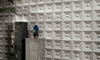 Wzór ze smukłymi, geometrycznymi kształtami piramid tworzy iluzję głębi.