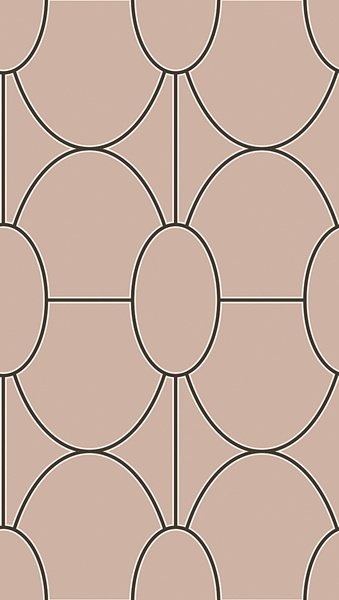 zazębiające się owale wydrukowane w delikatnie wypukłym, teksturowanym wykończeniu. Prezentowany w klasycznych neutralnych kolorach czerni i bieli,