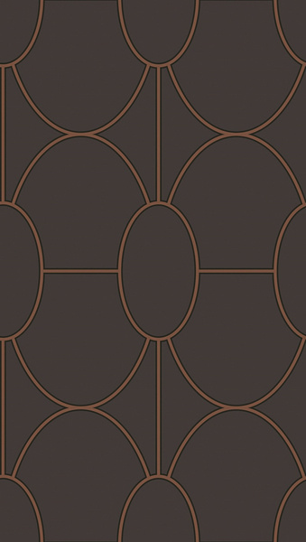 zazębiające się owale wydrukowane w delikatnie wypukłym, teksturowanym wykończeniu. Prezentowany w klasycznych neutralnych kolorach czerni i bieli,