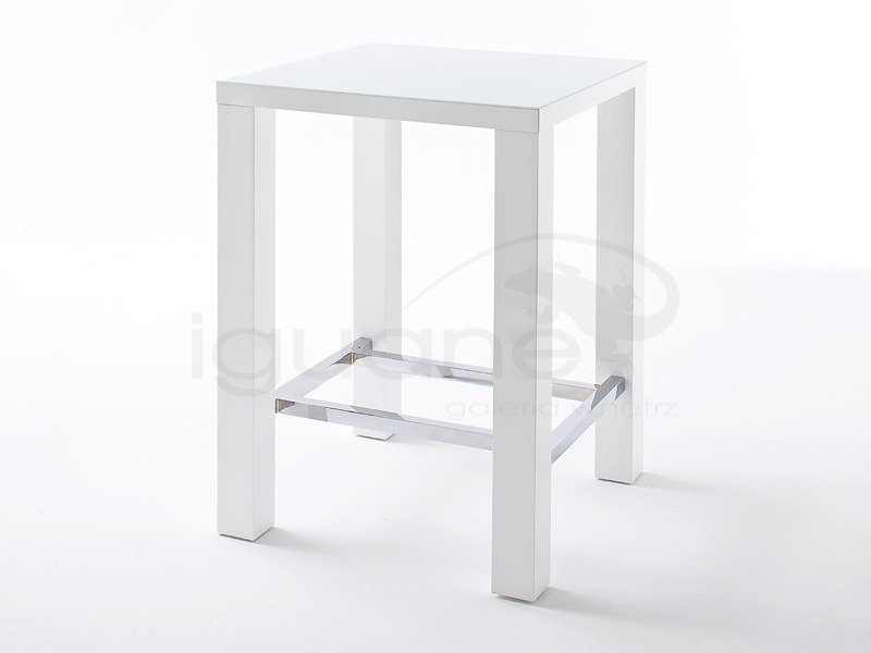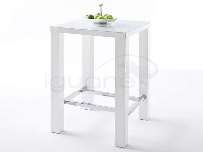 Stolik barowy 80 x 80 x 108 cm, lakier biały wysoki połysk / blat szkło białe
