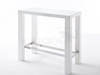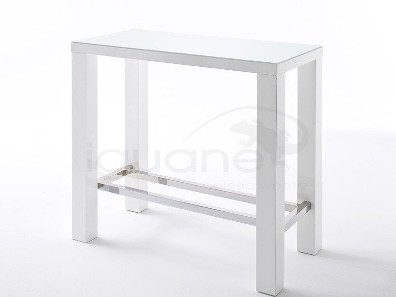Stolik barowy 120 x 60 x 108 cm, lakier biały wysoki połysk / blat szkło białe