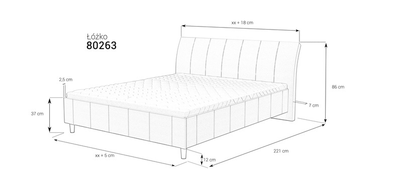 Konstrukcja: łóżko 80263-xx obicie 40110 (zdjęcie poniżej), płyta w obiciu z tkaniny meblowej, do wyboru z grup materiałowych. Poniższe ceny dotyczą wyłącznie łóżka.