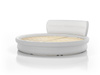 Łóżko z płyty w obiciu z tkaniny meblowej, do wyboru z grup materiałowych. Łóżko okrągłe, średnica 2,5m. Łóżko ze stelażem, bez zagłówka.