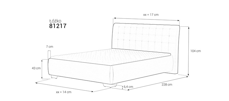UWAGA: Za dopłatą możliwość zamówienia łóżka o nietypowej szerokości (od 120cm do 200cm) i długości (od 190cm do 220cm) w odstępach co 10 cm. Stelaż KF zalecany jest do materacy o wysokości wkładu nie większej niż 19 cm, a w przypadku wymiaru powyżej 160x200 cm, należy skontaktować się ze sprzedawcą w celu skonsultowania możliwości użytkowania wybranego materaca na tym stelażu. Możliwość zamówienia łóżka w wersji RM na ramie metalowej o nietypowej długości 190, 210 i 220 cm. Zagłówek łóżka w tylnej części jest otapicerowany.