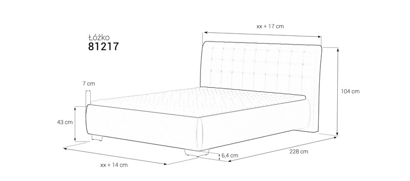 UWAGA: Za dopłatą możliwość zamówienia łóżka o nietypowej szerokości (od 120cm do 200cm) i długości (od 190cm do 220cm) w odstępach co 10 cm. Stelaż KF zalecany jest do materacy o wysokości wkładu nie większej niż 19 cm, a w przypadku wymiaru powyżej 160x200 cm, należy skontaktować się ze sprzedawcą w celu skonsultowania możliwości użytkowania wybranego materaca na tym stelażu. Możliwość zamówienia łóżka w wersji RM na ramie metalowej o nietypowej długości 190, 210 i 220 cm. Zagłówek łóżka w tylnej części jest otapicerowany.