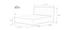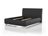 Łóżko z płyty w obiciu z tkaniny meblowej, do wyboru z grup materiałowych. Łóżko ze stelażem tworzącym pojemnik na pościel. Rama metalowa.