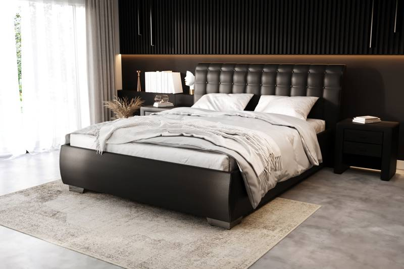 • RM - łóżko wyposażone w stelaż na ramie metalowej z listwami giętymi oraz pojemnikiem na pościel.