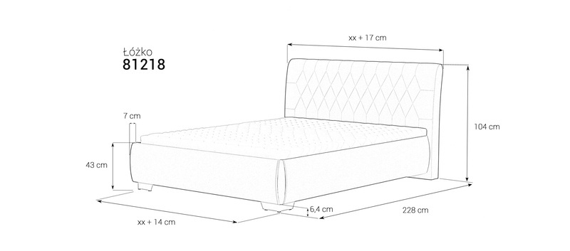 UWAGA: Za dopłatą możliwość zamówienia łóżka o nietypowej szerokości (od 120cm do 200cm) i długości (od 190cm do 220cm) w odstępach co 10 cm. Stelaż KF zalecany jest do materacy o wysokości wkładu nie większej niż 19 cm, a w przypadku wymiaru powyżej 160x200 cm, należy skontaktować się ze sprzedawcą w celu skonsultowania możliwości użytkowania wybranego materaca na tym stelażu. Możliwość zamówienia łóżka w wersji RM na ramie metalowej o nietypowej długości 190, 210 i 220 cm. Zagłówek łóżka w tylnej części jest otapicerowany.