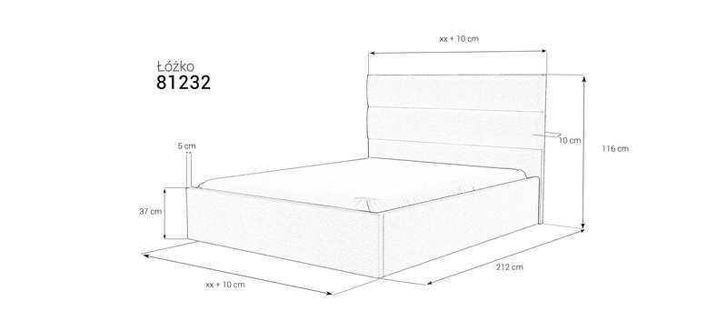 • KF - łóżko wyposażone w jeden stelaż podnoszony KF z funkcją pojemnika