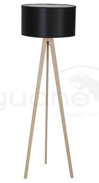 • Lampa podłogowa Tripod Wood abażur tekstylny czarny