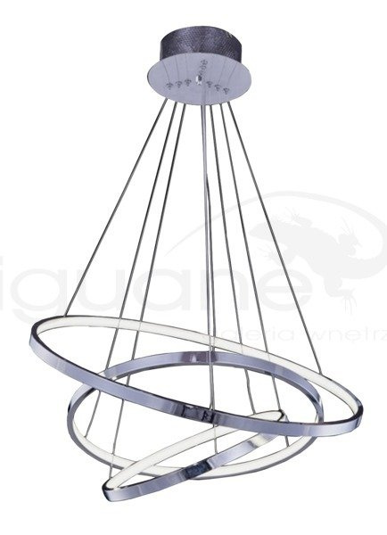Nowoczesny charakter lampy Wheel sprawdzi się w minimalistycznych wnętrzach. Bedzie ona niekwestionowaną ozdobą pomieszczenia a dostępne kolory (czarny, chrom lub złoty) podkreślają jej formę. Lampa ledowa składa się z 3 pierścieni o różnych średnicach 75, 60 i 45cm.