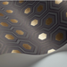 Jego nadruk przypominający plaster miodu podkreślony zarówno delikatnymi paletami kolorów, jak i dramatycznymi odcieniami i wypolerowanymi metalikami.