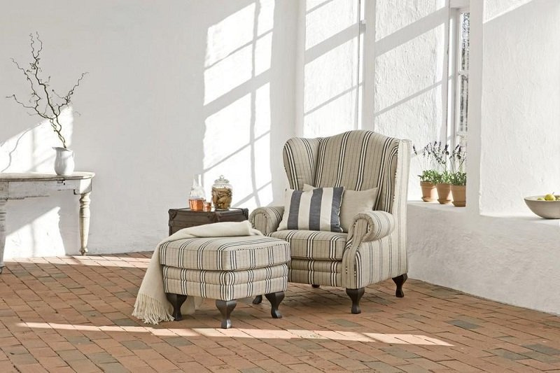 Fotel o pięknym klasycznym kształcie. Niezwykle szykowny, miękki, wygodny, z głębokim siedziskiem. Zaprojektowany tak, aby cieszyć oko, urzekać klasyczną linią, a przede wszystkim zapewnić komfortowy wypoczynek właścicielowi. Wyższy komfort i miękkość zapewnia oparcie i siedzisko wypełnione pierzem. Wysokie oparcie jest wyprofilowanie tak, aby drzemka w fotelu sprawiała przyjemność, natomiast miękkie, zaokrąglone podłokietniki pozwalają na wygodę podczas przesiadywania w objęciach Królowej Anny… Dopełnieniem fotela jest pufa zapewniająca możliwość pełnego relaksu, która może posłużyć jako podnóżek lub dodatkowe miejsce do siedzenia. Zależnie od doboru nóżek i tkanin, harmonijna linia Queen Ann prezentuje się niezwykle zarówno w klasycznym wnętrzu jak i w nowoczesnym. Queen Ann to królewski mebel.