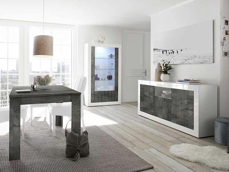 Witryna, 2 drzwi, korpus lakier biały wysoki połysk, front laminat oxide