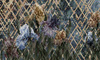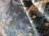 Olbrzymie kwiaty, którym dynamiki dodają ukośne linie, a struktura rombów wydobywa głębię.