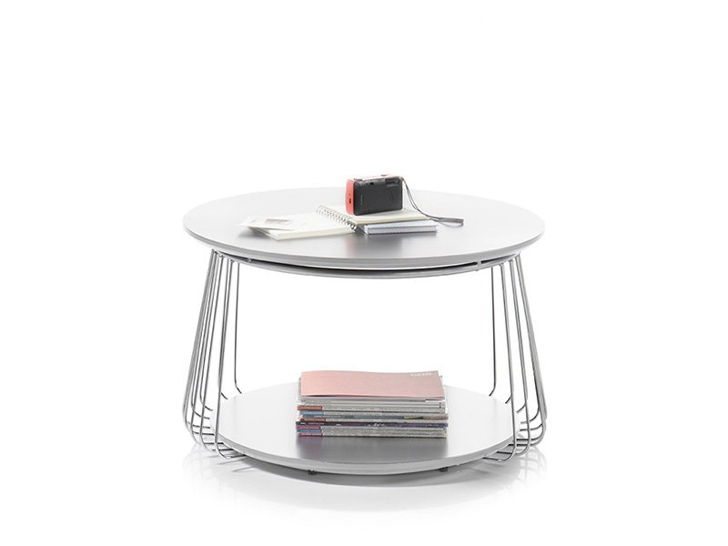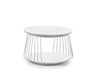 Stolik kawowy, MDF, lakier biały matowy, stelaż chrom, ? 70 x 42 cm