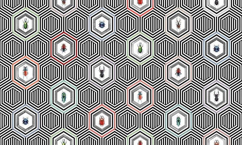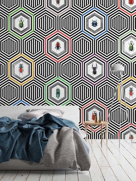 Mural budzi ciekawość dzięki uroczym owadom wplecionym w duży geometryczny wzór.