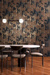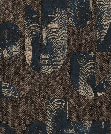 Wzór Mask w sposób oczywisty nawiązuje do rdzennych kultur Afryki, jest tajemniczy i wyrazisty dzięki głębokim kolorom i połyskliwym detalom. Na tle drewnianej jodełki wyłaniają się urzekające maski, przyciągają wzrok i tworzą niecodzienny charakter we wnętrzu.