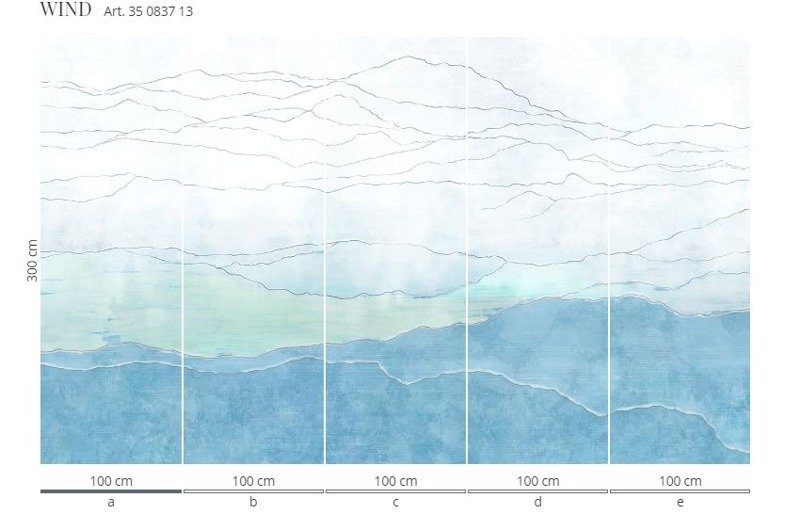 Murale marki Wonderwall sprzedajemy w rolkach o standardowych wymiarach: 100 cm x 300 cm. Jeśli wysokość waszego pomieszczenia jest mniejsza niż 3 metry, wówczas nadmiar tapety należy w odpowiednim miejscu odciąć. Na pełny wzór składa się pięć rolek: a, b, c, d i e. Można wybrać konkretne rolki dopasowując tapetę do swojego wnętrza. Lub można przygotować mural pod konkretny wymiar. W tym celu prosimy o kontakt pod mail sklep@iguane.pl