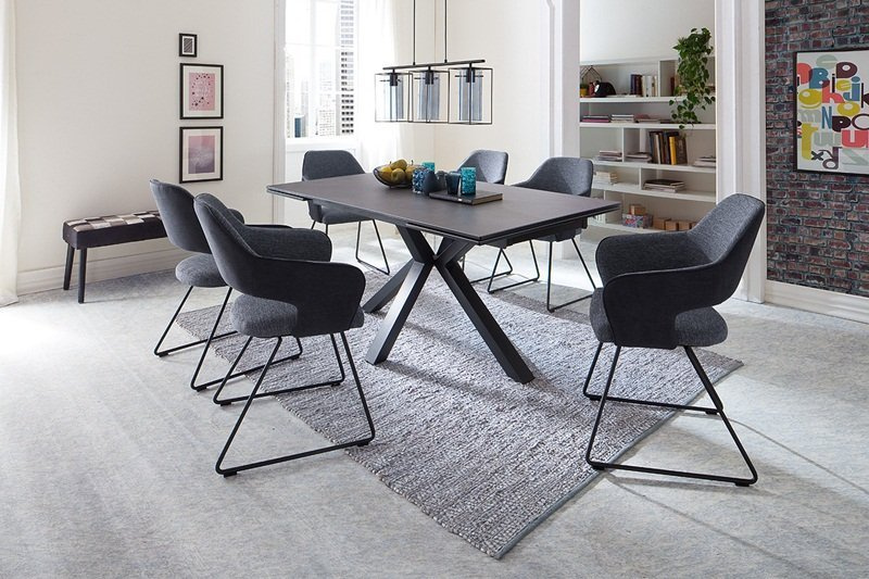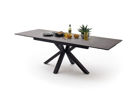 Stół, blat i wysuwki szkło + ceramika antracytowa, stelaż czarny mat , 160 (240) x 90 x 76 cm