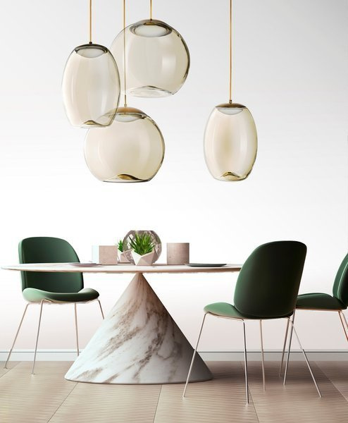 Najbardziej imponujący efekt uzyskamy łącząc wszystkie kształty lamp, zawieszając je obok siebie. Stworzy to designerski charakter, który będzie wyglądał reprezentacyjnie nad stołem, w holu czy przy strefie wypoczynku.
