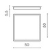 Lampa Monza II S SMART 50 składa się z szerokiej, aluminiowej ramy o kwadratowym kształcie. W jej wnętrzu znajduje się pojedyncze, zintegrowane źródło światła LED, przykryte mlecznobiałym, akrylowym kloszem, rozpraszającym światło. Lampa występuje w dwóch wariantach barwnych: białym lub czarnym.