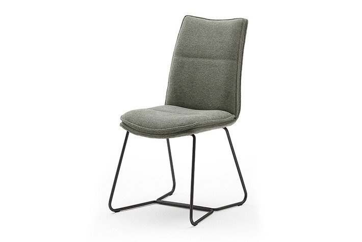• Krzesło, stelaż ramowy rurka, lakier czarny mat, oparcie z uchwytem tylnym, tkanina typu szenil, oliwkowa
