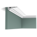 Gzyms płaski C355 montowany tylko na części sufitowej. Dzięki cieniom powstającym za wybrzuszoną częścią gzymsu uzyskuje się ciekawy efekt