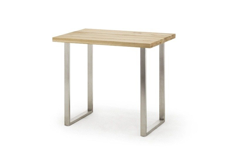 Stolik barowy 120 x 80, dąb lity dziki ze spękaniami, lakier, grubość blatu z pogrubiaczem 5 cm, stelaż stal szlachetna. Meble do samodzielnego montażu.