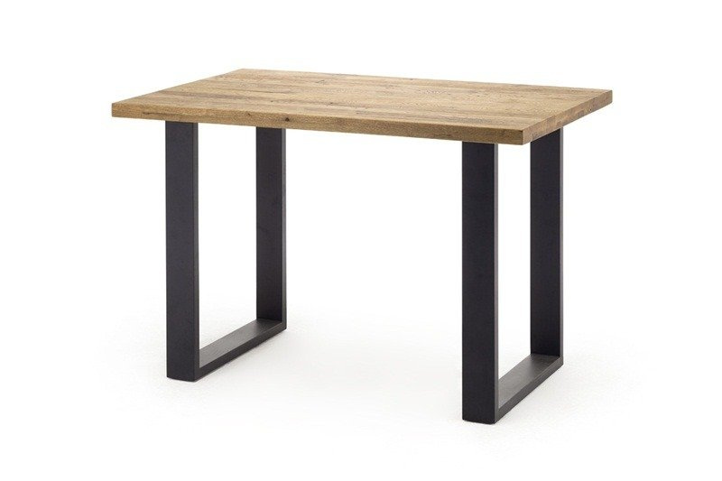 Stolik barowy 160 x 100, dąb lity dziki ze spękaniami, lakier, grubość blatu z pogrubiaczem 5 cm, stelaż metal lakier antracyt mat. Meble do samodzielnego montażu.