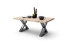 Stolik kawowy prostokątny, drewno akacjowe, kolor natur, lakier, obrzeże ciosane, stelaż typu krzyżak, metal lakier antyczny przecierany.