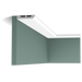 Prosta, gładka listwa z zakrzywioną krawędzią, montowana na części sufitowej.