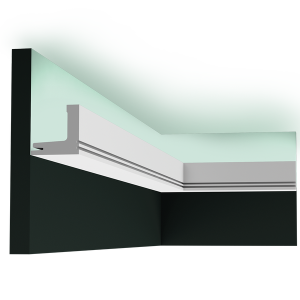 Gzyms do oświetlenia pośredniego C361 - Stripe z podwójnym pasem. Inspirowany latami 30-tymi XX-ego wieku. Pełna gama działań związanych z grą światła i cienia. Gzyms oświetleniowy, z możliwością malowania. Płaszczyzny i ostre krawędzie