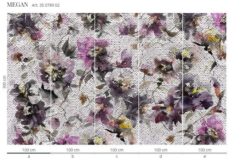 Murale marki Wonderwall sprzedajemy w rolkach o standardowych wymiarach: 100 cm x 300 cm. Jeśli wysokość waszego pomieszczenia jest mniejsza niż 3 metry, wówczas nadmiar tapety należy w odpowiednim miejscu odciąć. Na pełny wzór składa się pięć rolek: a, b, c, d i e. Można wybrać konkretne rolki dopasowując tapetę do swojego wnętrza. Lub można przygotować mural pod konkretny wymiar. W tym celu prosimy o kontakt pod mail sklep@iguane.pl