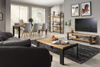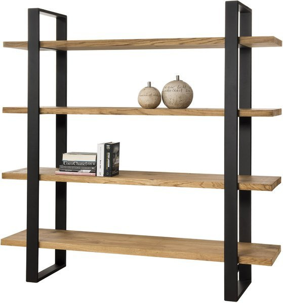• Regał Udine z blatami z litego drewna oraz metalową konstrukcją