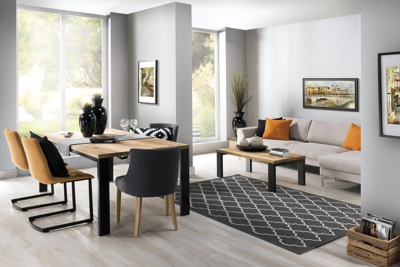 Ława Nesto zaprojektowana zgodnie z najnowszymi trendami. Blat stołu został wykonany z najwyższej jakości drewna dębowego o grubości 4 cm. Podstawę ławy stanowią dwie metalowe nogi w kształcie odwróconej litery U pomalowane proszkowo na czarny półmat. Nogi mogą być również malowane na biało.